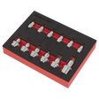 Forged Chrome Vanadium steel sockets with S2 steel hex bits. Sockets are heat treated and chrome plated with a fully polished mirror finish. Knurled rings assist the gripping of the sockets with oily fingers. Supplied in EVA tray.