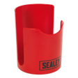 Magnetic durable plastic cup or aerosol can holder, designed to be attached to any flat ferrous metal surface such as toolboxes and trolleys. Four powerful magnets have a protective vinyl covering to prevent damage occurring to the surface they're mounted on.