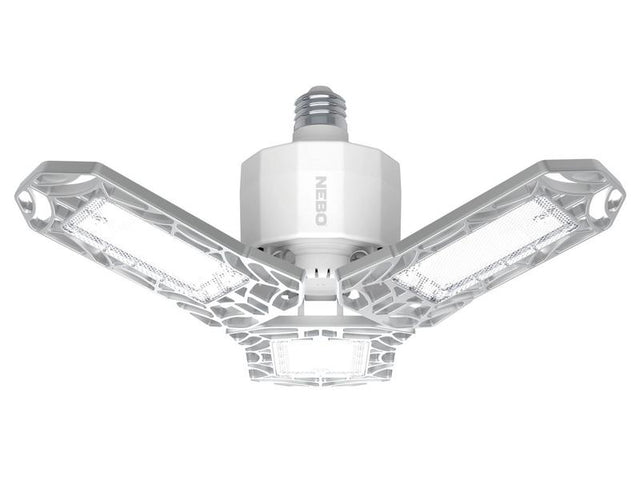 This mains-powered LED light produces an impressive 6,000 lumens while consuming only 60 watts, making it six times brighter than a standard household bulb. It features three adjustable LED panels that can tilt up to 90 degrees, allowing you to direct light precisely where itÂ’s needed. Compact and lightweight at just 340 grams, it measures 11.5cm x 13cm x 13cm, fitting easily into any standard screw base socket.