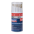 Edge ground HSS titanium coated drill bits ideal for drilling extra hard materials. 118° Split point tip enables bits to bite workpiece quickly, reducing the need for centre mark. Drills can be resharpened without affecting their performance. Supplied in cylindrical plastic case. Sizes: Ø1.5, 2, 2.5, 3, 3.2, 3.5, 4, 4.5, 5, 6, 8mm.
