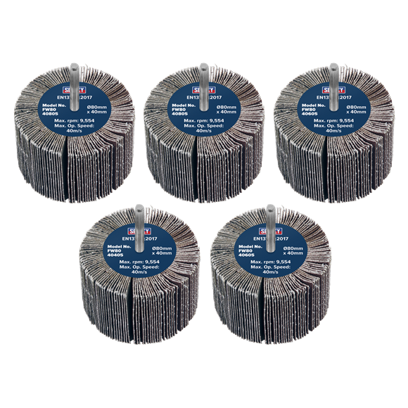 Sealey | 80 x 40mm Abrasive Flap Wheel on 6mm Shaft Assorted Grit - Pack of 5 - FW8040ASS 0.945 kg