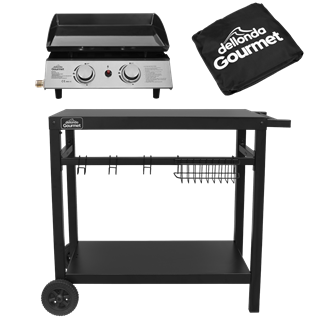 • DIMENSIONS - Plancha (W x D x H): 48.5 x 47 x 24cm, Cooking Area (W x D): 47 x 36cm, Trolley (W x D x H): 94.5 x 59 x 81.5cm, Top Shelf (W x D): 85 x 50cm, Bottom Shelf (W x D): 76.5 x 48.5cm.