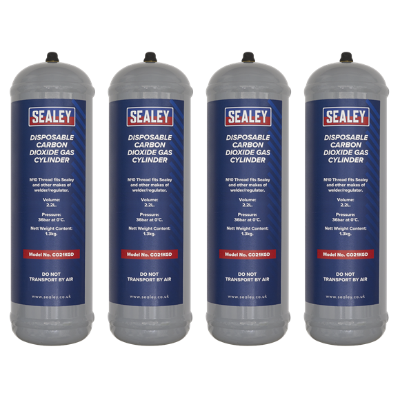 Sealey | Disposable Carbon Dioxide Gas Cylinder 1.3kg - Pack of 4 - CO21KGD4 16.0 kg