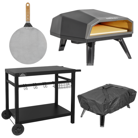 • Supplied with a water-resistant cover, pizza stone, pizza peel and a 27mm regulator and hose assembly for propane gas bottles, you'll have everything you need to get started.
