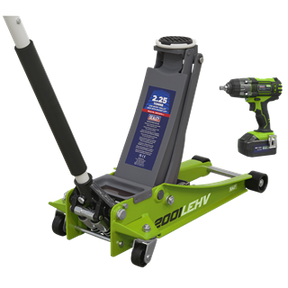 Sealey | 2.2 Tonne Trolley Jack & 18V Cordless Impact Wrench - Green - 2001LEHVCOMBO 33.5 kg