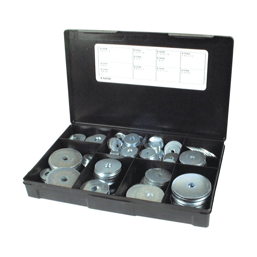 Contains: 25 x S.13360 Imperial Repair Washer, ID: 1/4'', OD: 1'' (Din 7973) 25 x S.13361 Imperial Repair Washer, ID: 1/4'', OD: 1 1/4'' (Din 7973) 25 x S.13362 Imperial Repair Washer, ID: 1/4'', OD: 1 1/2'' (Din 7973) 25 x S.13363 Imperial Repair Washer, ID: 5/16'', OD: 1'' (Din 7973) 25 x S.13364 Imperial Repair Washer, ID: 5/16'', OD: 1 1/4'' (Din 7973) 25 x S.13365 Imperial Repair Washer, ID: 5/16'', OD: 1 1/2'' (Din 7973) 20 x S.13366 Imperial Repair Washer, ID: 5/16'', OD: 2'' (Din 7973) 25 x S.13367 Imperial Repair Washer, ID: 3/8'', OD: 1'' (Din 7973) 25 x S.13368 Imperial Repair Washer, ID: 3/8'', OD: 1 1/4'' (Din 7973) 25 x S.13369 Imperial Repair Washer, ID: 3/8'', OD: 1 1/2'' (Din 7973) 20 x S.13370 Imperial Repair Washer, ID: 3/8'', OD: 2'' (Din 7973)