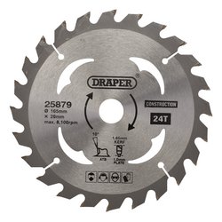 Draper Tct Cordless Construction Circular Saw Blade For Wood & Composites, 165 X 20mm, 24T - SBC2