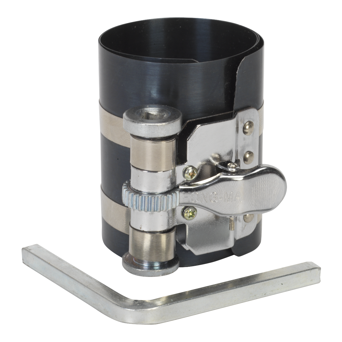 - Efficient ratchet action tension mechanism ensures precise and secure compression of piston rings.
