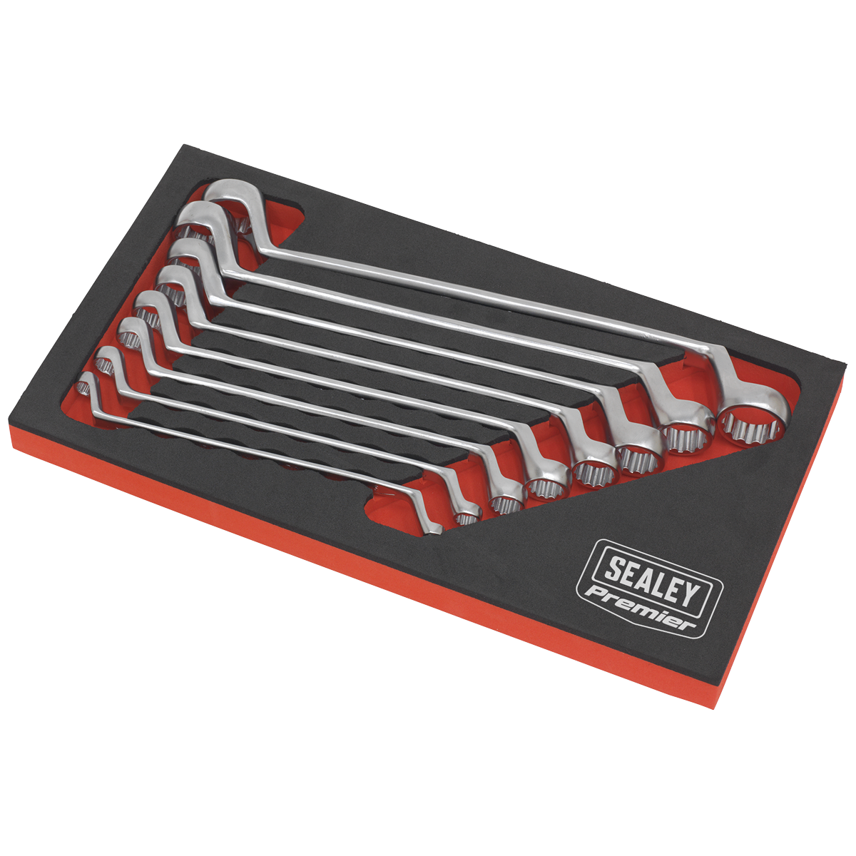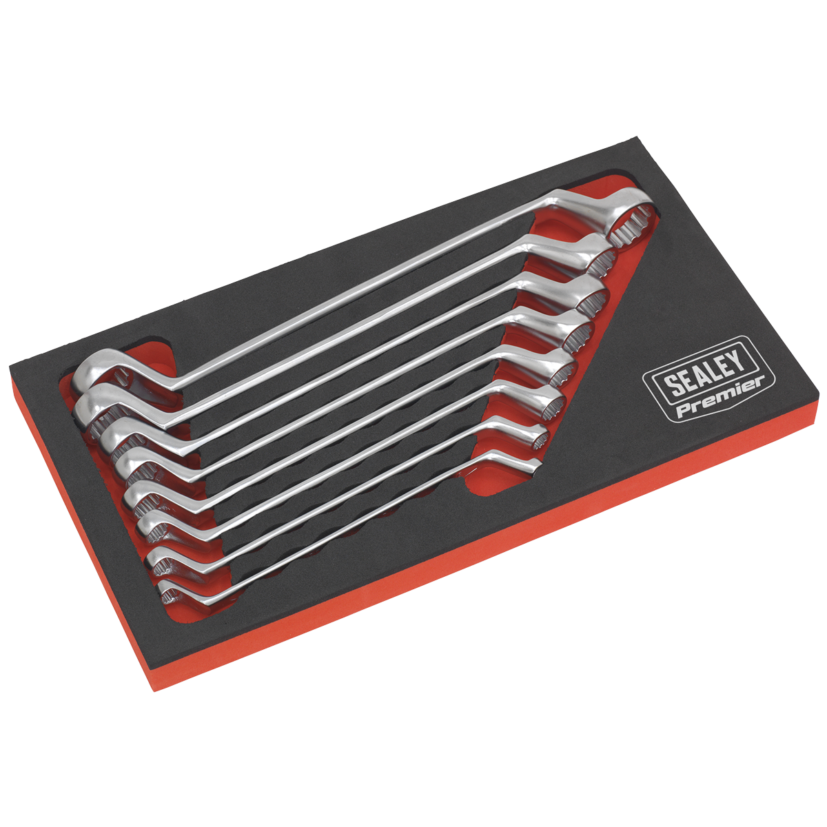 Cold stamped slim style Chrome Vanadium steel spanners. Deep offset WallDrive® rings with a satin polished finish for resistance to corrosion. Supplied in EVA storage tray.
