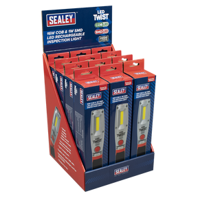 Sealey | LED Twist Rechargeable Inspection Light 16W COB & 1W SMD - Display Box of 12 - LED2001DB 7.4 kg