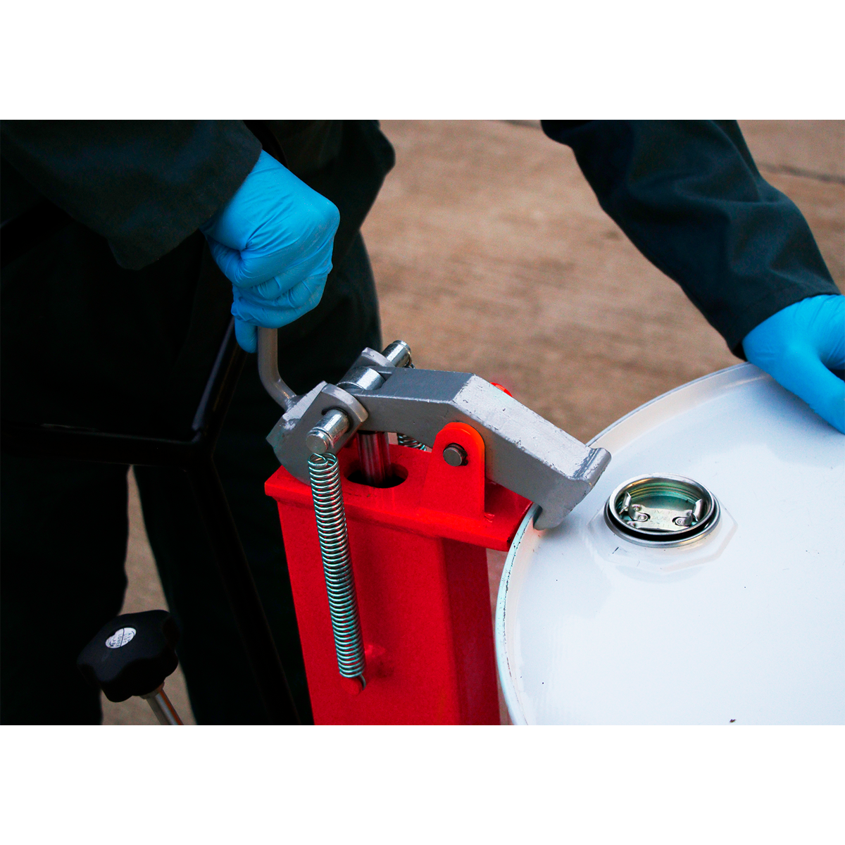 Less manual effort required as hydraulic ram clamps drum, then raises it off the ground for simple manoeuvring and relocation. Cradle is fitted with two smooth-rolling, heavy-duty wheels and one castor with brake. Suitable for 205L drums.