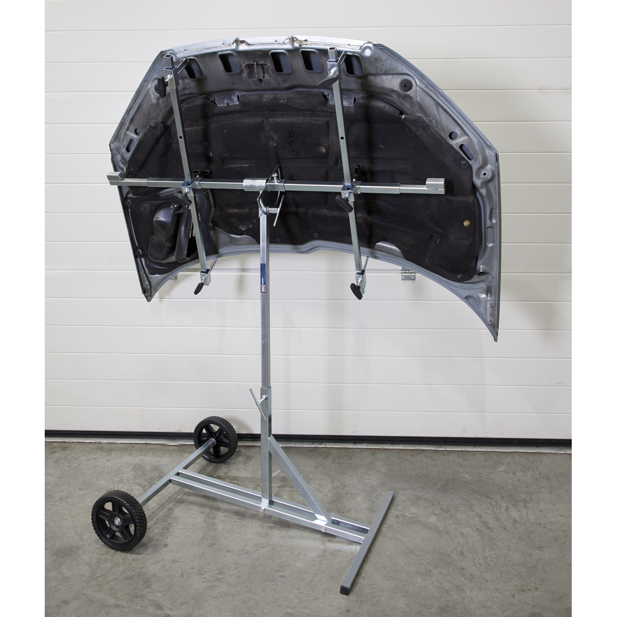 Compact design, yet can handle the larger bonnets, tailgates etc. Ideal for doors, bonnets, bumpers, wings and spoilers. Fully adjustable, rotates full 180°. Adjustable and rotating bars make this stand suitable for almost all panel types. Portable for easy manoeuvring of application from preparation to spray booth.