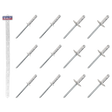 - Features a range of rivet sizes: Ø4.8 x 13mm, Ø4.8 x 19mm, Ø4.8 x 27mm, and Ø3.2 x 10mm, catering to diverse fastening needs.