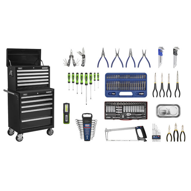 Topchest & Rollcab Combination 10 Drawer with Ball-Bearing Slides - Black with 148pc Tool Kit - APCOMBOBBTK56 110.0 kg