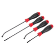 Set of four angled tools that allow removal of O-rings and seals without damage. Features contoured and spoon tips.