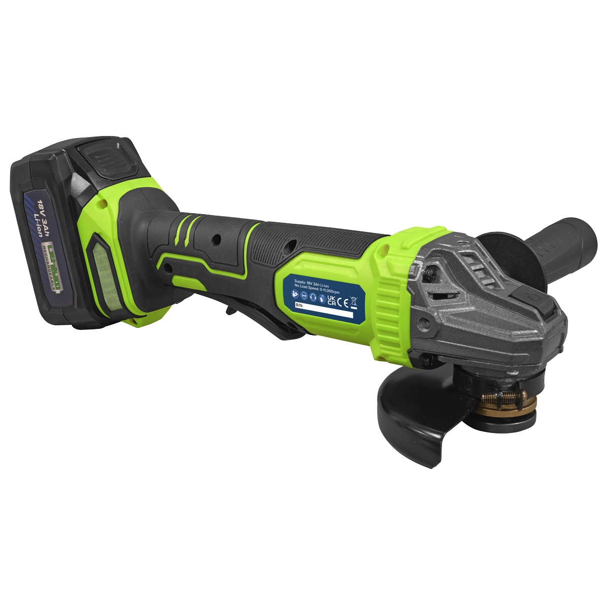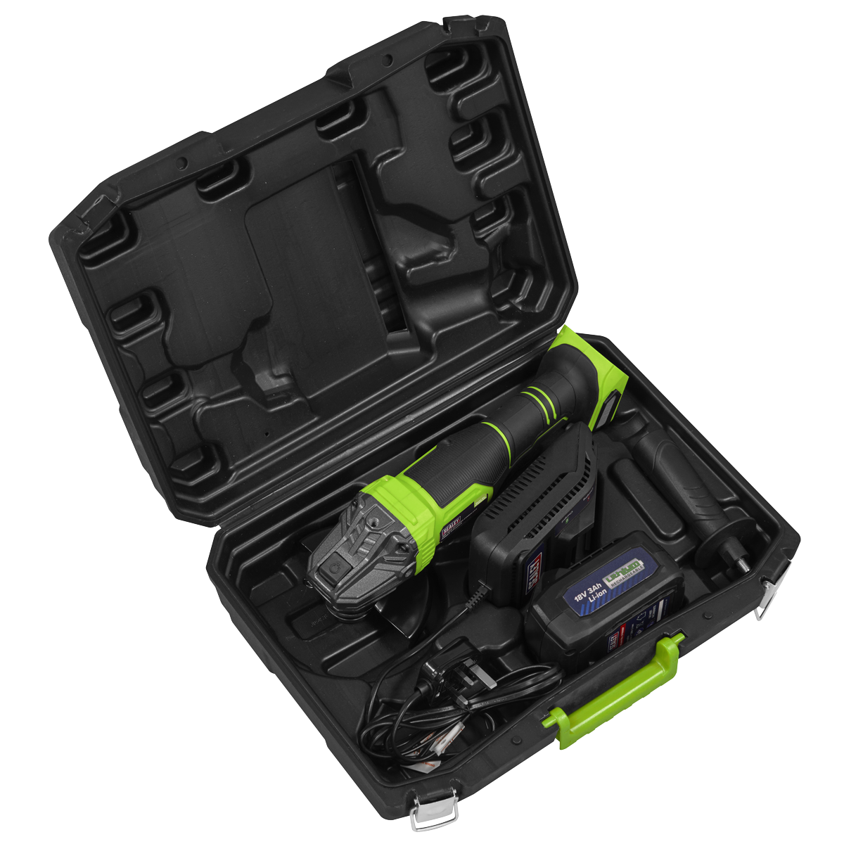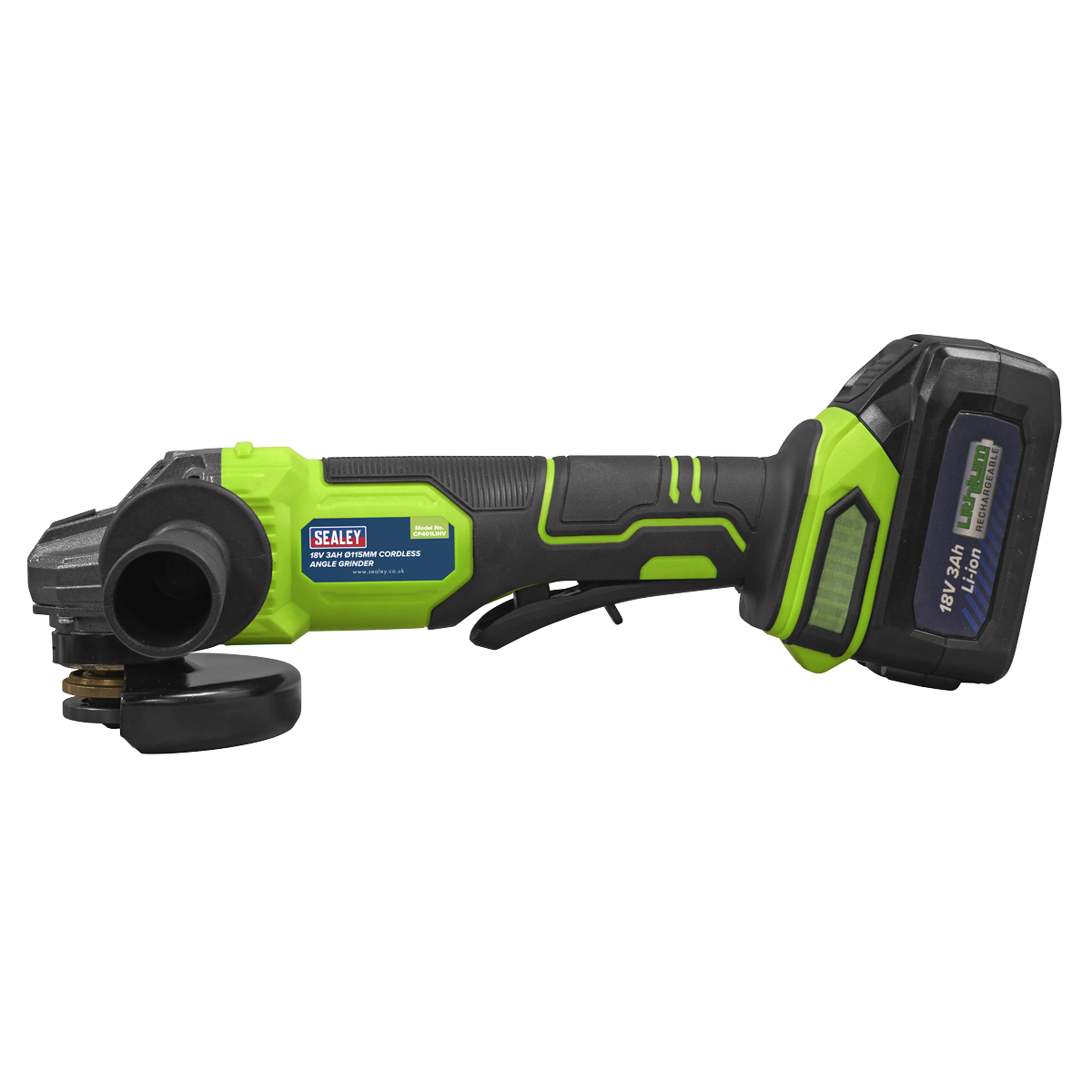Sealey | 18V 3Ah 115mm Cordless Angle Grinder - Green - CP401LIHV 4.4 kg