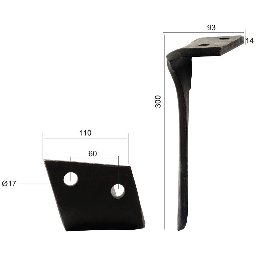 Power Harrow Blade 110x14x300mm RH. Hole centres: 60mm. Hole Ø 17mm. Replacement for Alpego. To fit as: DO06700D | Sparex Part No.S.78216 2.28 kg