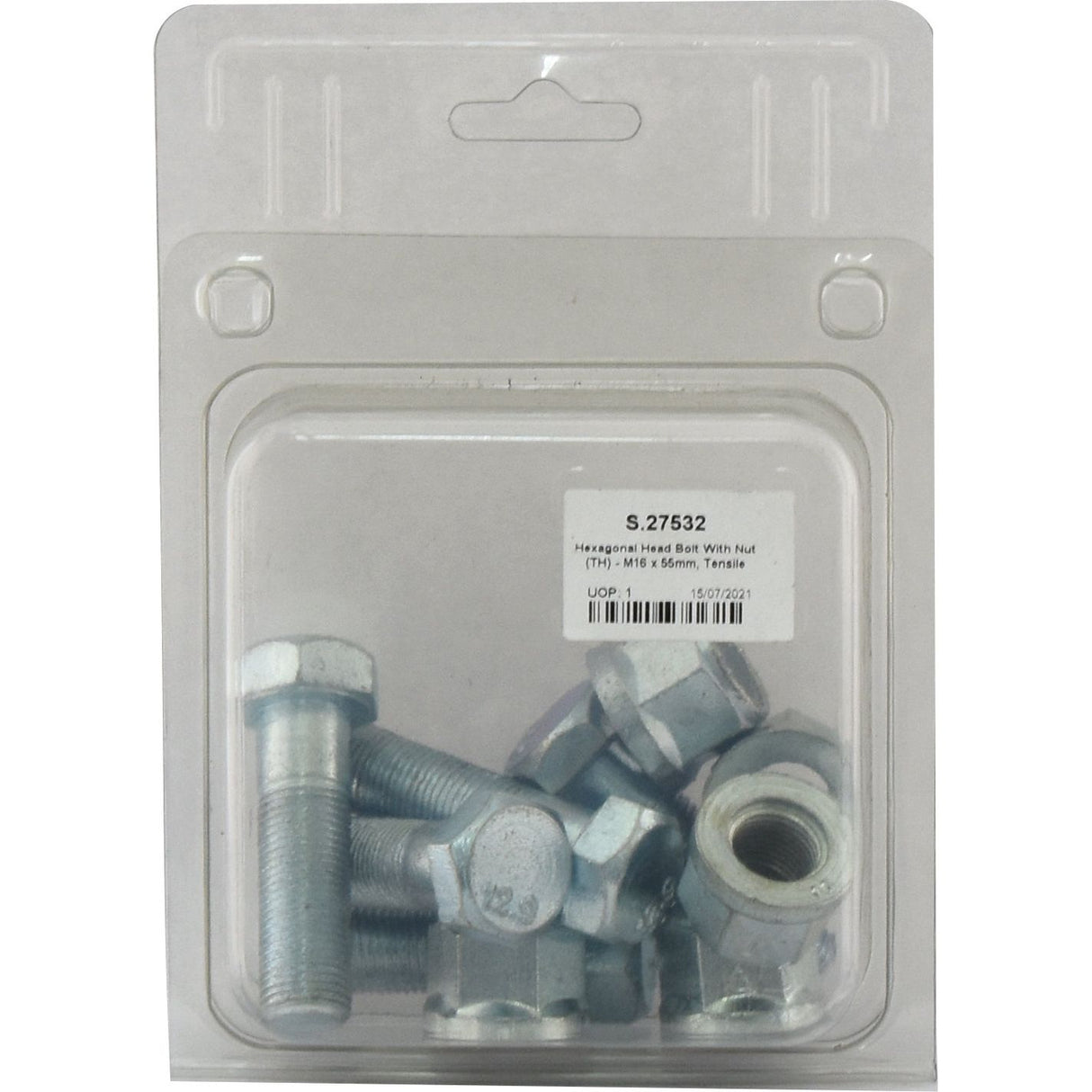 Hexagonal Head Bolt With Nut (TH) - M16x55mm, Tensile Strength 12.9 (5 pcs. Agripak)