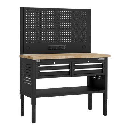 Superline PRO® Modular Workbench with Pegboard Back Panel Wooden Worktop 1265mm - SE-APMWB50COMBOW