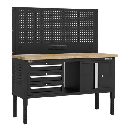 Superline PRO® Modular Workbench with Pegboard Back Panel Wooden Worktop 1525mm - SE-APMWB60COMBOW