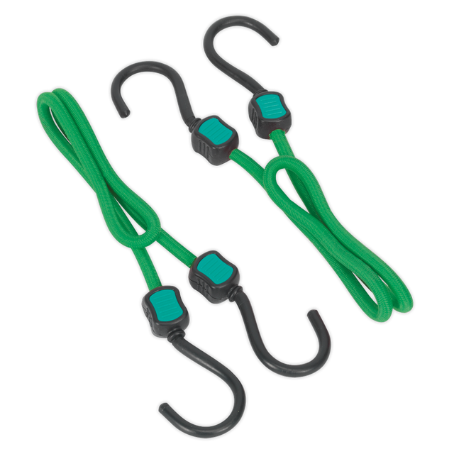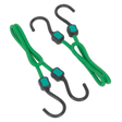 Set of two strong steel hooks with smooth nylon coating to prevent scratching. Heavy-duty polypropylene braid and high grade rubber cord providing maximum elasticity. Ideal for a wide range of applications including garages, workshops and trailers.