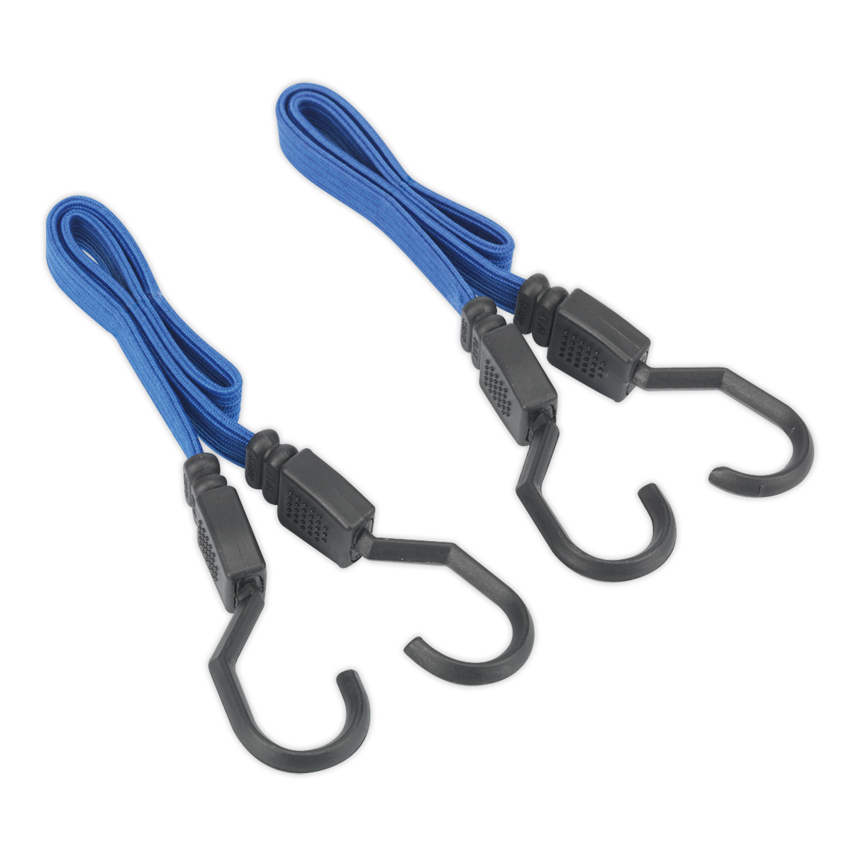 Set of extra-strong bungee cords ideal for multiple applications including garage, workshop, trailer and domestic use. Heavy-duty steel hooks with nylon coating, polypropylene braid with high grade rubber cord giving maximum elasticity. Up to three time stronger than traditional bungee cords.