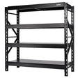 Enhance the storage capacity of your garage with this BUNKER® racking solution. This heavy-duty, all-steel construction offers ample space across 4 tiers. It is coated in a durable matt black textured powder for long-lasting performance. The height of each shelf is adjustable, offering flexibility for storing all your tools with ease.