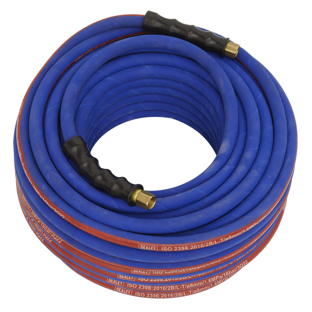 - Premium quality rubber air hose measuring 30m x Ø8mm, designed for durability and performance in demanding environments.