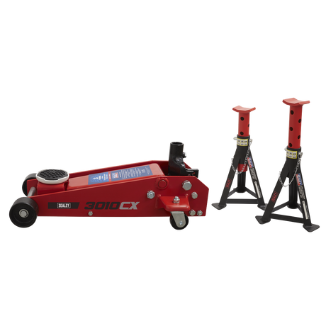 Sealey | Trolley Jack 3 Tonne & Axle Stands (Pair) 3 Tonne per Stand Combo - 3000CXDCOMBO1