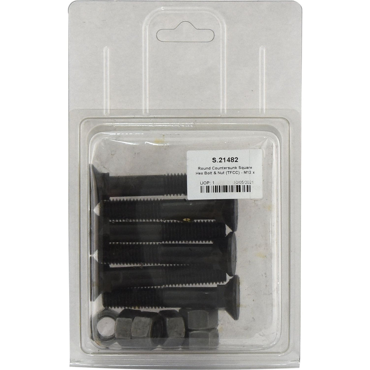 Round Countersunk Square Hex Bolt & Nut (TFCC) - M12 x 70mm, Tensile strength 12.9 (6 pcs. Agripak) | Sparex Part No.S.21482 0.62 kg