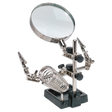 Ideal for awkward jobs where a third hand is needed. Cast steel base for extra stability. Fitted with two fully articulated crocodile clamps and Ø90mm magnifying glass. Features soldering iron holder to safely store soldering iron when no longer in use.