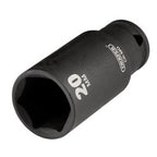 These Draper Hi-TORQ® 6-point deep impact sockets are forged from hardened chrome molybdenum steel. Black phosphate finish for corrosion protection. For use with electric or pneumatic impact wrenches with a 3/8" drive.