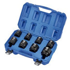 These Draper HI-TORQ® 6-point impact sockets are forged from hardened chrome molybdenum. Black phosphate finish for corrosion protection. Includes sizes 24, 27, 30, 32, 33, 36, 41, 46mm. For use with electric or pneumatic impact wrenches with a 3/4" drive. Ring and pin installed. Supplied inside a sturdy plastic storage case with metal hinges and buckle.