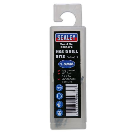 HSS Fully Ground Drill Bit Ø1.5mm Pack of 10 - DB015FG