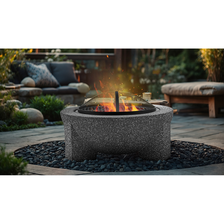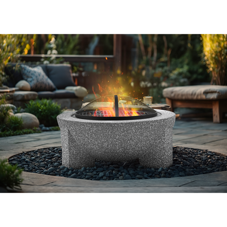 Sealey | Dellonda Round MgO Fire Pit with BBQ Grill, Ø75cm, Safety Mesh Screen - Dark Grey - DG191