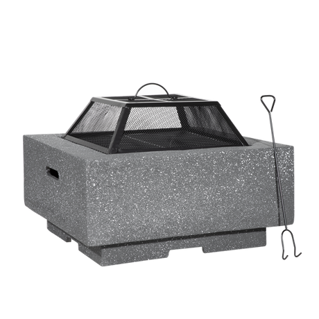 Sealey | Dellonda Square MgO Fire Pit with BBQ Grill, Safety Mesh Screen - Dark Grey - DG193