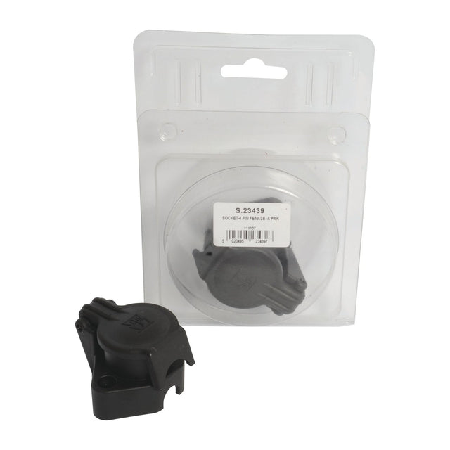 4 Pin Auxiliary Female Socket Black Plastic (Agripak) | Sparex Part No.S.23439 0.07 kg