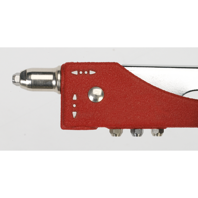 2-Position head allows jaws to work either at 90° or 180° to the workpiece. Chrome Molybdenum jaws in steel jaw case. Supplied with four nozzles to accept 2.4mm(3/32"), 3.2mm(1/8"), 4mm(5/32") and 4.8mm(3/16") rivets. Suitable for aluminium and steel rivets. Supplied in storage case with nozzle spanner and a selection of approximately 60 assorted rivets.