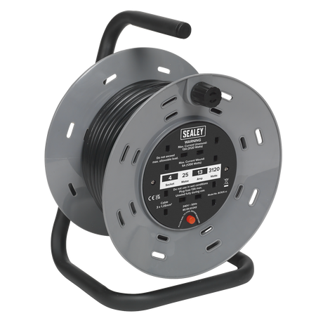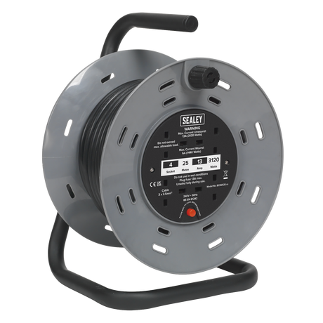 Cable Reel 25m 4 x 230V 2.5mm² Heavy-Duty Thermal Trip - CR22525