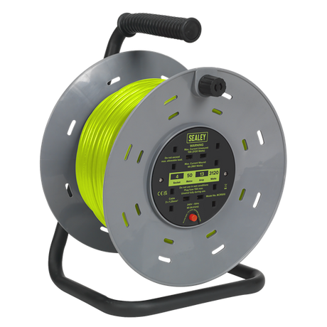 Sealey | 50m Cable Reel with Thermal Trip 4 x 230V - Hi-Vis Green - BCR50G
