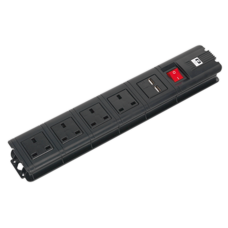 Extension Cable 2.6m 4 x 230V + 2 x USB Sockets - Black - EL34USBB