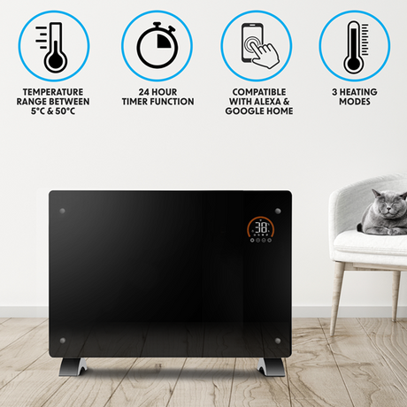 Sealey | Baridi, Electric Glass Panel Heater, 1000W, Wi-Fi Enabled, Black - DH135 - DH135