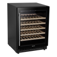 - Stylish 60cm under-counter wine cooler with a tempered mirror glass door that protects wine from UV light while providing a clear view of contents.