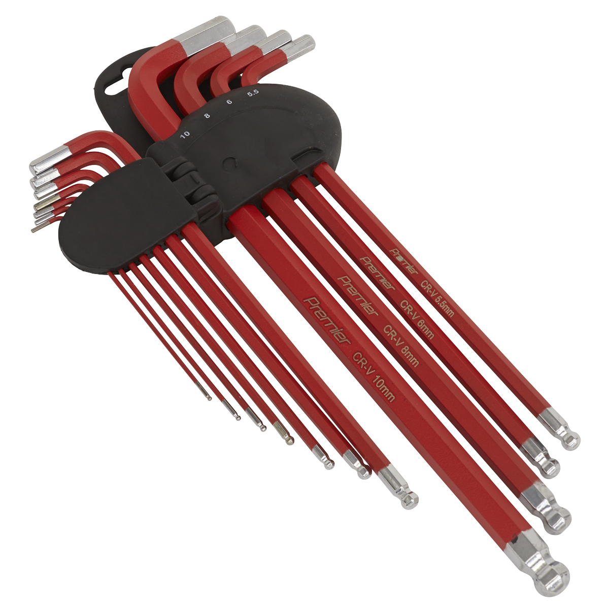 Manufactured from heat treated and hardened Chrome Vanadium steel with a fully polished finish. Keys range in length from 90.5 to 231mm. Contents: 1.5, 2, 2.5, 3, 4, 5, 5.5, 6, 7, 8, 10mm. Anti-slip coating for comfort and control. Supplied in easy-access case for safe storage and quick key selection.