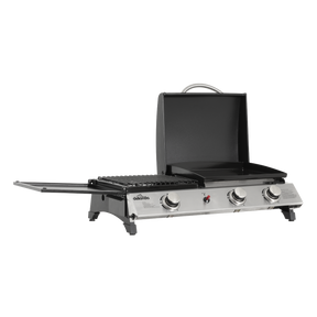 • Plancha bbq grill with three stainless steel burners gives even heat distribution. Use in the garden, travel or camping trips.