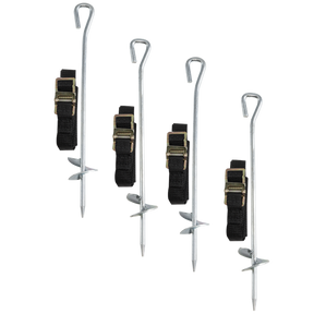 • KIT INCLUDES - Four spiral steel pegs and four adjustable safety straps.