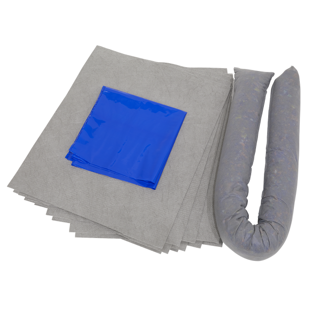 Designed to absorb spills and drips with a maximum capacity of 15L. Contains a range of high quality absorbents, including high-grade polypropylene pads that can absorb up to 1L of fluid and featuring a double weight cover stock for maximum absorbency. Supplied with 1.2m absorbent sock specially designed to absorb up to 5L of fluid and create barriers to keep spills from spreading. Suitable for use with oil, petrol, diesel, coolants, mild solvents, water and other spills. Full list of absorbent applications provided in each kit. Supplied in a resealable storage bag.