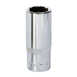 Cold-forged Chrome Vanadium steel socket. Hardened and tempered for added strength. Chrome plated with a fully polished mirror finish. WallDrive® socket configuration. Knurled ring for extra grip with oily fingers.