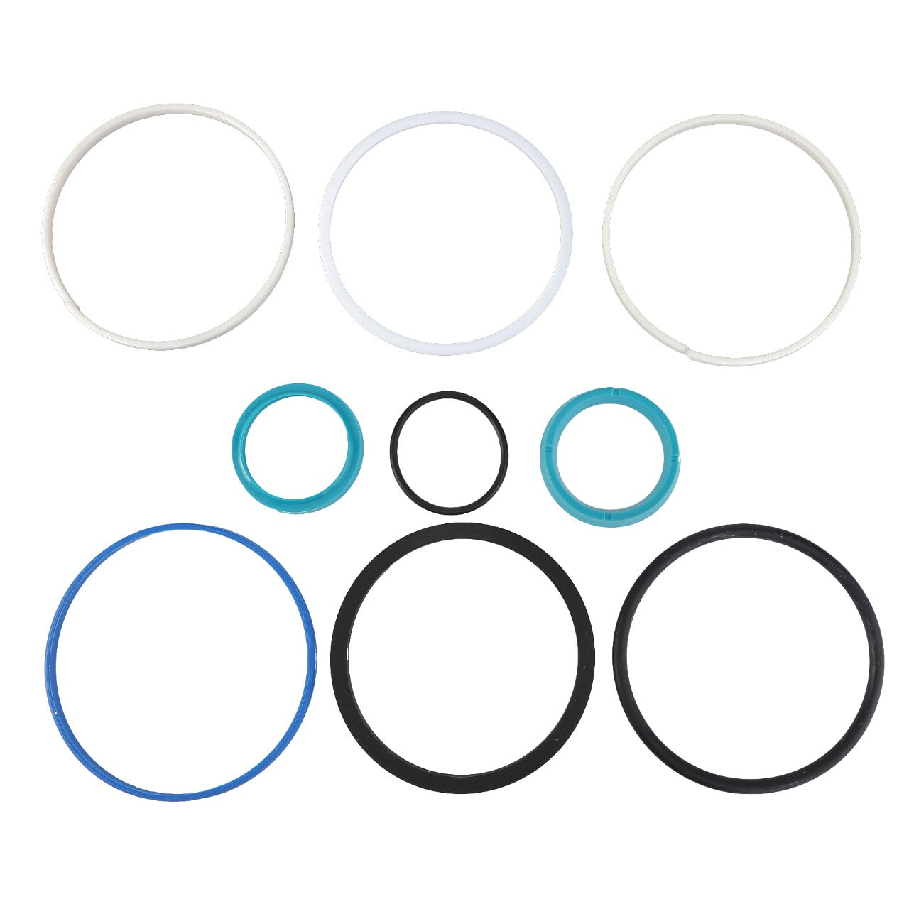 Set of 9 rings for hydraulic cylinder maintencance and repair. Install genuine seals for reliability and performance. Our seals and gaskets are made from the correct high-quality materials specified by engineering for the application to ensure the parts meet the high-performance demands. Genuine parts deliver manufacturing consistency ensuring every part meets strict tolerances.