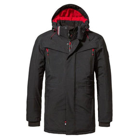 Durable waterproof and windproof winter parka with fleece lining for warmth and comfort.